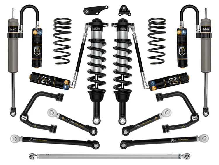 - All shock absorbers equipped with ICON CDXS for independent adjustability of high speed and low speed compression force for handling response and aggressiveness